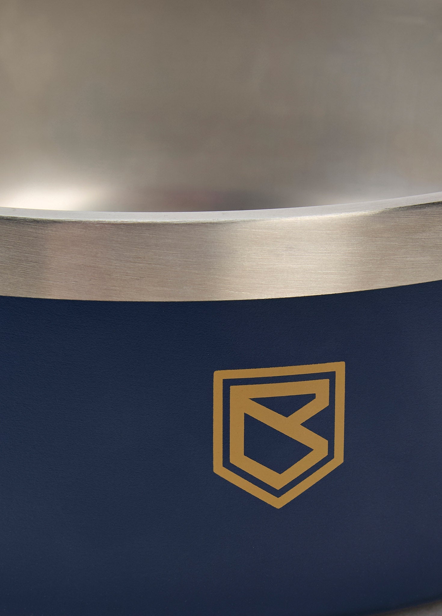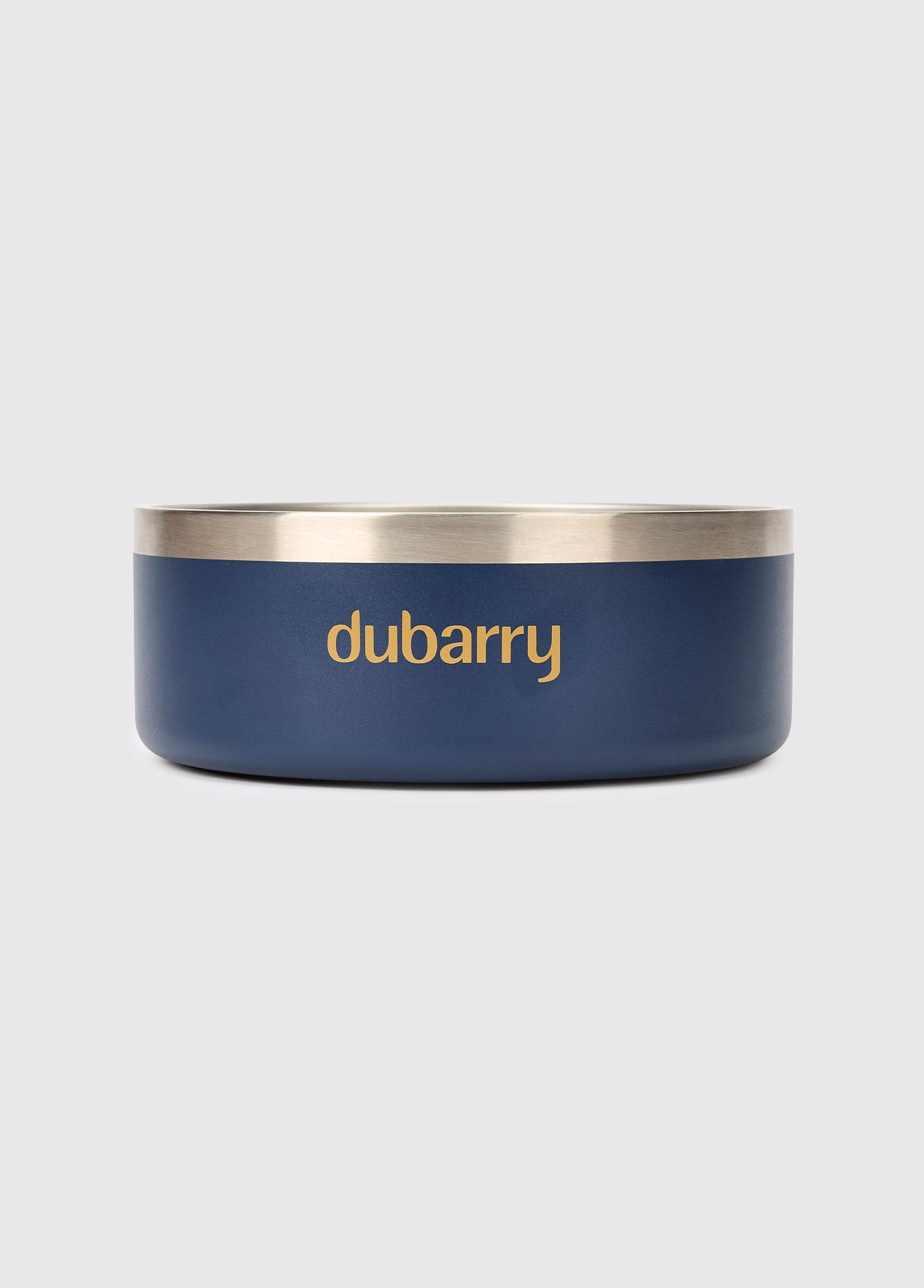 Gamelle pour chien en acier inoxydable, couleur marine, avec logo Dubarry doré.
