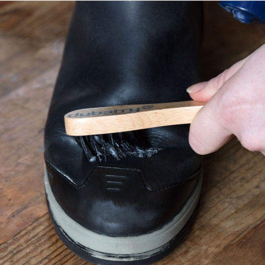 - Marquage Dubarry en caoutchouc moulé inséré au niveau du bandeau central de la jambe