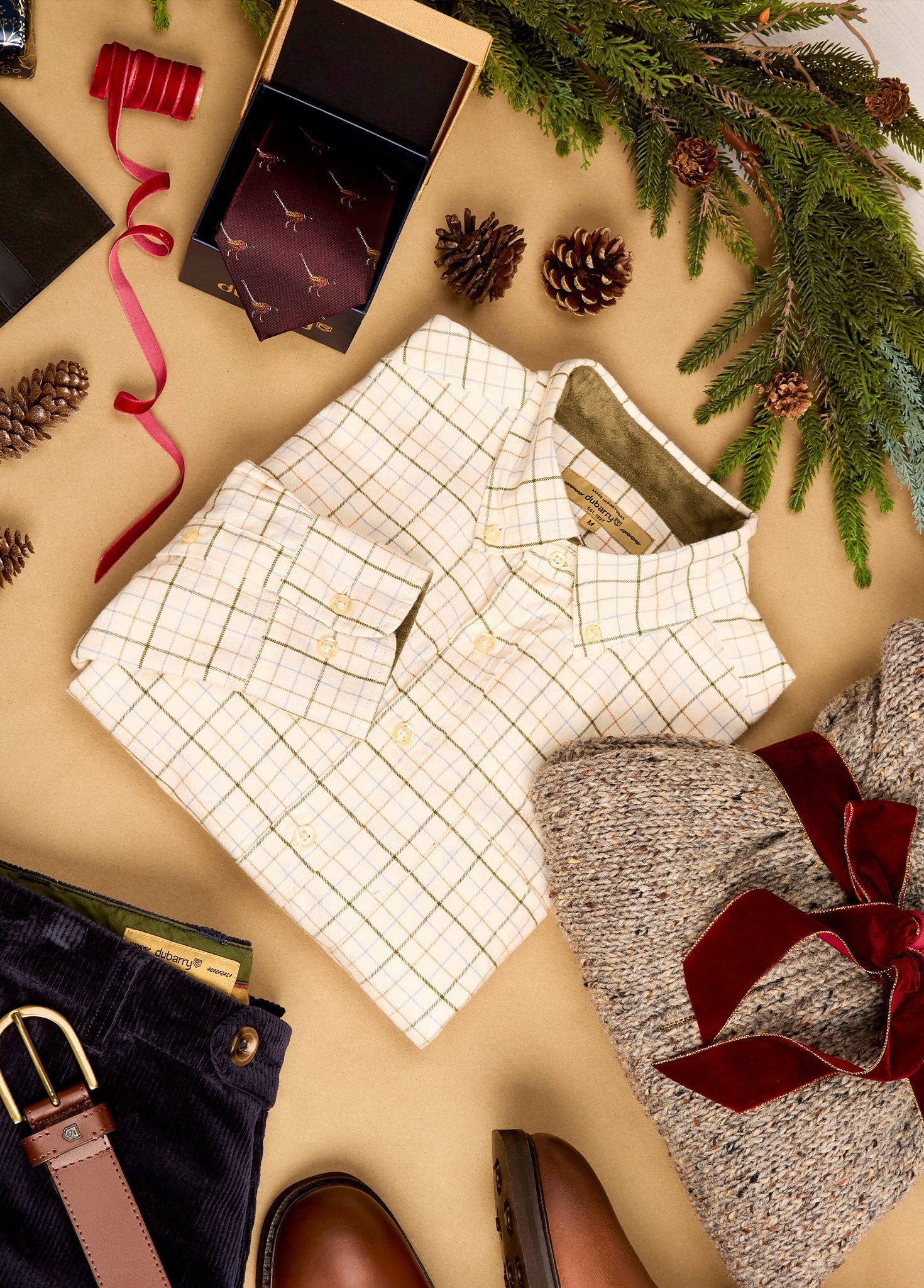 • Motif Tattersall à carreaux conçu sur mesure, assorti à nos pulls et vestes