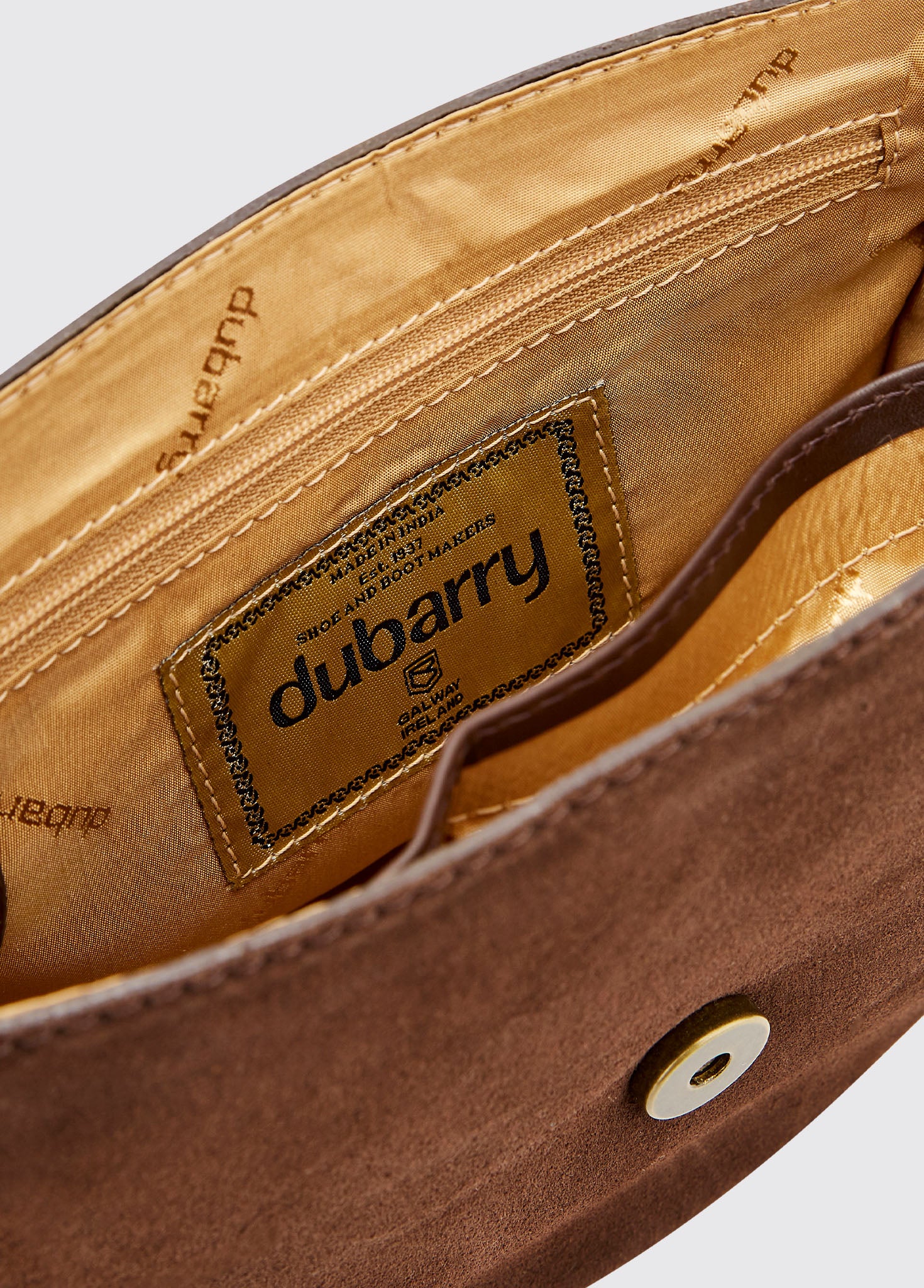 Léger, soigné, parfait pour les essentiels, le Crossgar est un petit sac de selle avec une sangle transversale pratique. Fabriqué à partir d'une combinaison de daim et de cuir, il s'harmonise parfaitement avec la gamme de chaussures Dubarry et complète à merveille notre collection de vestes en tweed et cirés. Le partenaire idéal lorsque vous avez besoin d'avoir les mains libres pour les programmes des courses (essentiel !), les feux de bengale de soirées de feu de joie ou un gâteau.
