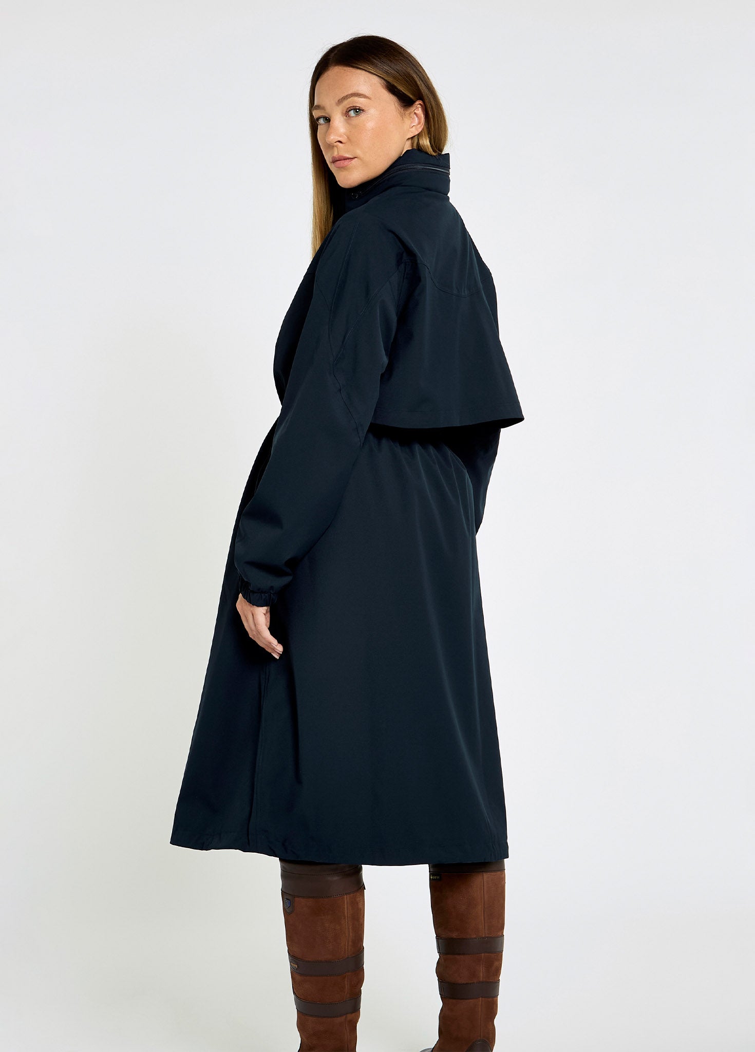 Par une journée humide de printemps, notre Sandycover devient votre indispensable. Cette veste longue en polyester, avec finition déperlante durable et coutures étanches, est à la fois imperméable et respirante. Un cordon de taille permet un ajustement personnalisé et la fermeture éclair bidirectionnelle offre liberté de mouvement et accès rapide aux vêtements en dessous. Que vous accomplissiez votre liste de tâches du week-end en ville, que vous souteniez votre équipe sur le terrain de sport ou que vous travailliez aux écuries, zippez, déployez votre capuche et restez au sec pendant vos activités sous la pluie.